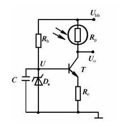通常,當(dāng)RL?R時(shí),流過(guò)光敏電阻的電流基本不變,此時(shí)的偏置電路稱為恒流電路。然而,光敏電阻自身的阻值已經(jīng)很高,再滿足恒流偏置的條件就難以滿足電路輸出阻抗的要求,為此,可引入如下圖所示的晶體管恒流偏置電路。