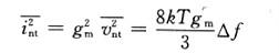 式中,R為波爾茲曼常數(1. 38X10-23.]/K);T為絕對溫度,△f為帶寬;gm為MOS晶體管的跨導。