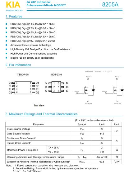 電池保護板-工作原理應用領域與元件參數表-KIA mos管