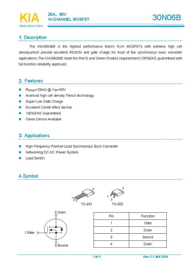 參數: ID(A): 25    BVDSS(V): 60    RDS(ON): 0.025    Qg(nC): 12.56    Package: TO-251、TO-252