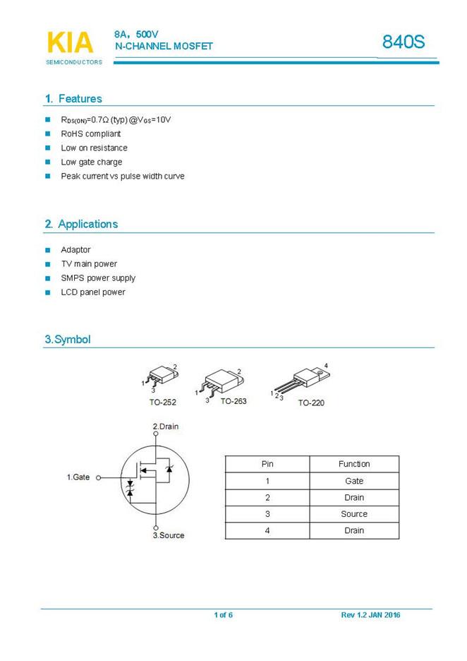 參數(shù): ID(A): 8    BVDSS(V): 500    RDS(ON): 0.9    Qg(nC): 24    Package: TO-252、TO-263、TO-220 TO-220F