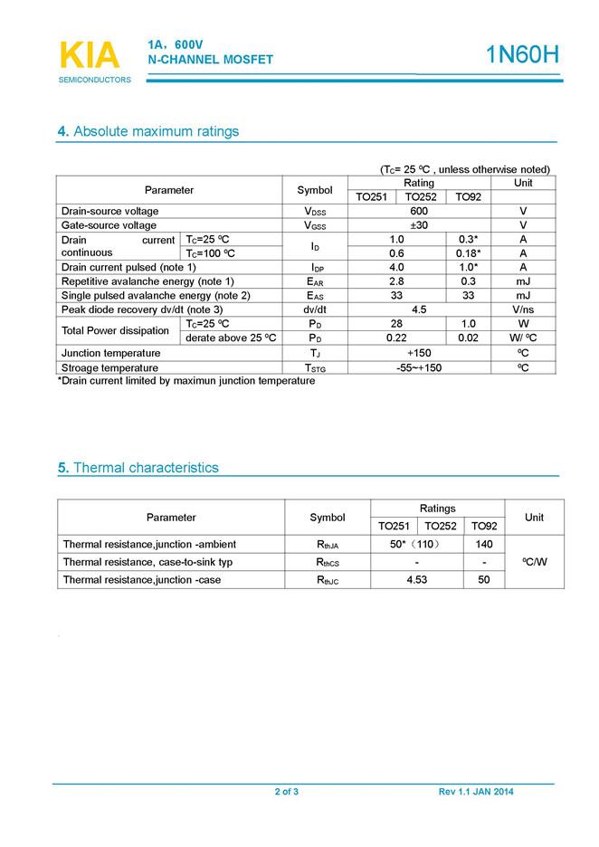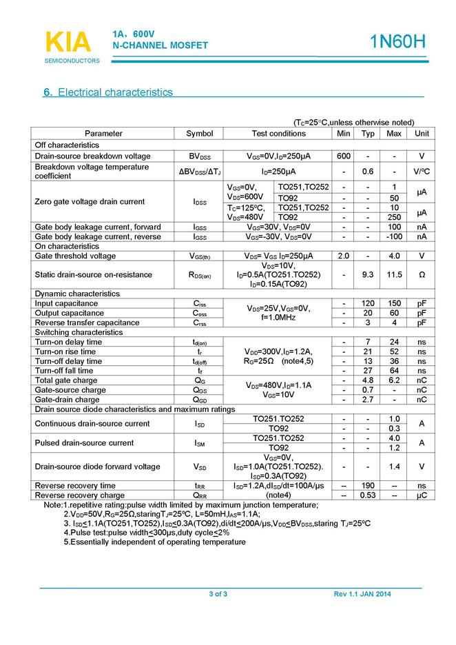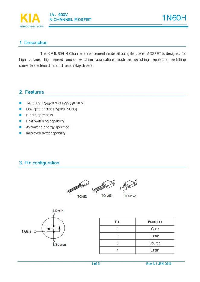 參數: ID(A): 1    BVDSS(V): 600    RDS(ON): 11.5    Qg(nC): 6.2    Package: TO-01、TO-251、TO-252