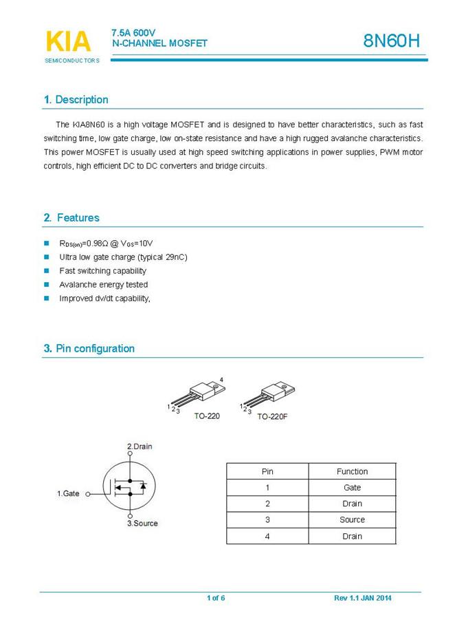 參數: ID(A): 7.5    BVDSS(V): 600    RDS(ON): 1.2    Qg(nC): 29    Package: TO-220、TO-220F